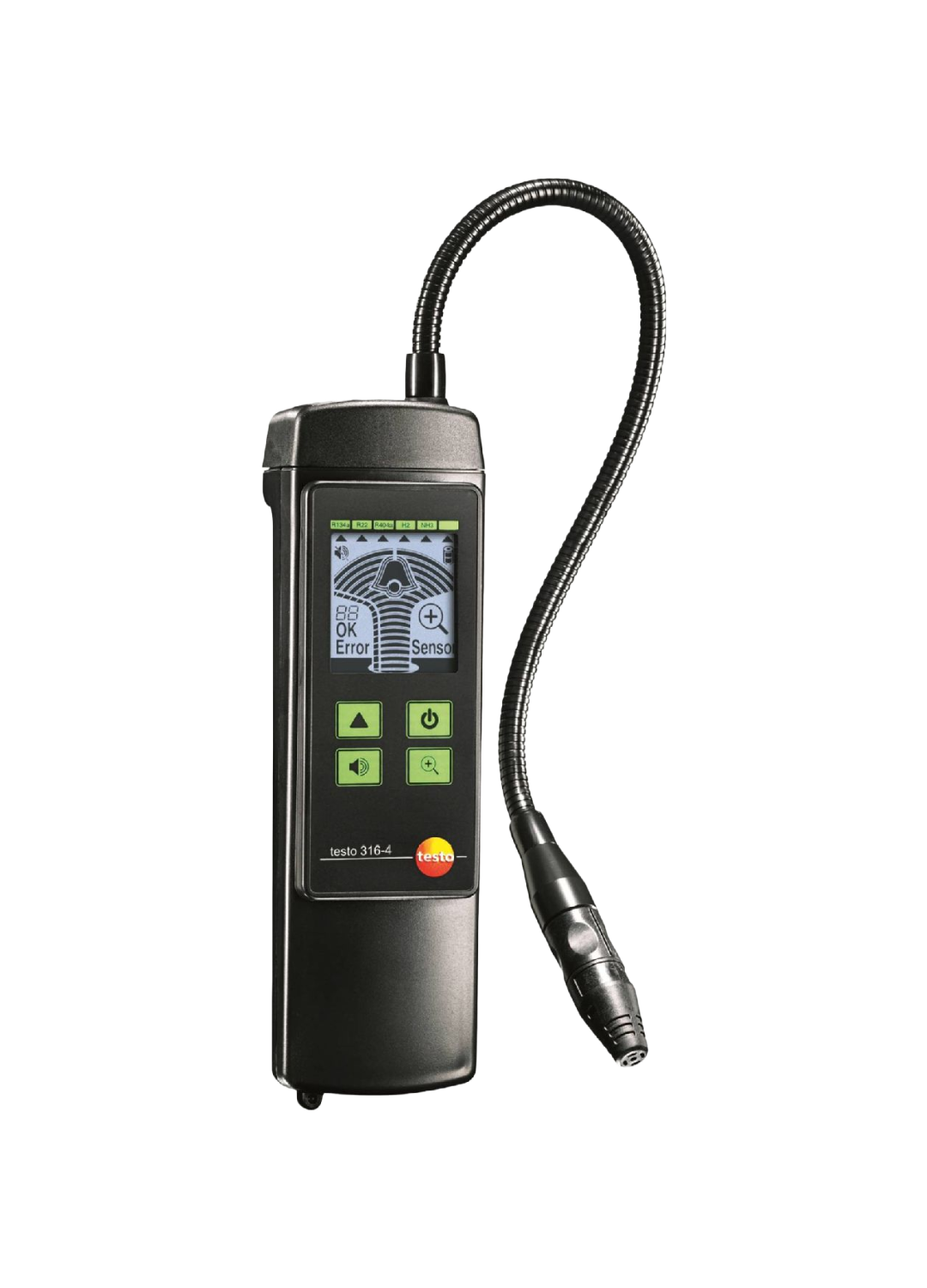 Leckagen an einer Kälteanlage oder Wärmepumpe haben schwerwiegende Folgen. Die nötige Kälteleistung ist nicht mehr vorhanden und schlimmstenfalls nehmen Komponenten der Anlage Schaden. Von den Umweltschäden und den entstehenden Kosten für Ihren Kunden ganz zu schweigen. Um auch kleinste Leckagen aufzuspüren; sind Sie auf schnelle und zuverlässige Messinstrumente wie das Lecksuchgerät testo 316-4 angewiesen. Die Vorteile des Leckagedetektors testo 316-4 Set 1 Allrounder für die Leckageortung: Der Leckagedetektor testo 316-4 (Set 1) ist ein schnelles und zuverlässiges Lecksuchgerät für alle gängigen Kältemittel Praktische Sensortechnik: Der Sensor des Leckagedetektors wird permanent überwacht und zeigt im Display Fehlfunktionen oder Verschmutzungen an. Somit erübrigt sich der Einsatz von Testlecks. Bei Verschmutzung kann der Sensor einfach gereinigt werden und ist sofort wieder einsatzbereit. Und dank biegsamem Schwanenhals kann der Sensor nahe an der Verrohrung bzw. am Messort positioniert werden Hohe Sensitivität: Die sehr hohe Sensitivität von ˂3g/a nach EN 14624 ermöglicht die sichere Detektion von kleinsten Leckagen. Die Schleppzeigerfunktion zeigt Maximalleckagen an und erleichtert so das Auffinden von Leckstellen Zuverlässige Warnfunktionen: Das Display wechselt bei Leckagen von grün auf rot. Ein akustisches Signal weist zusätzlich auf detektierte Leckagen hin. Und mit dem im Set enthaltenen Ohrhörer kann der Leckagedetektor testo 316-4 auch in lauter Umgebung eingesetzt werden. Weitere Optionen für Ammoniak: Für Kälteanlagen; die mit Ammoniak betrieben werden, können Sie das Lecksuchgerät testo 316-4 (Set 1) mit dem Ersatzkopf Ammoniak (NH3) aufrüsten. Oder Sie erwerben den Leckagedetektor testo 316-4 (Set 2) speziell für Ammoniak